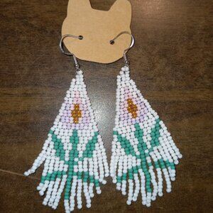 This one-of-a-kind pair brings delicate beauty to life with soft pink, white, green, and gold tones — all handwoven with love and intention.