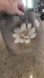 Elegant leather small bucket bag in a pretty taupe color with a handpainted flower design with added swarovski's and crystals.