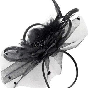 Floral Fascinator Hat Hair Clip with Headband Black
