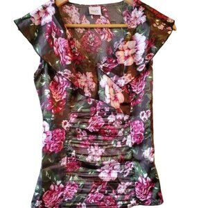 Floral Garden Suzy Shier Faux Wrap Blouse