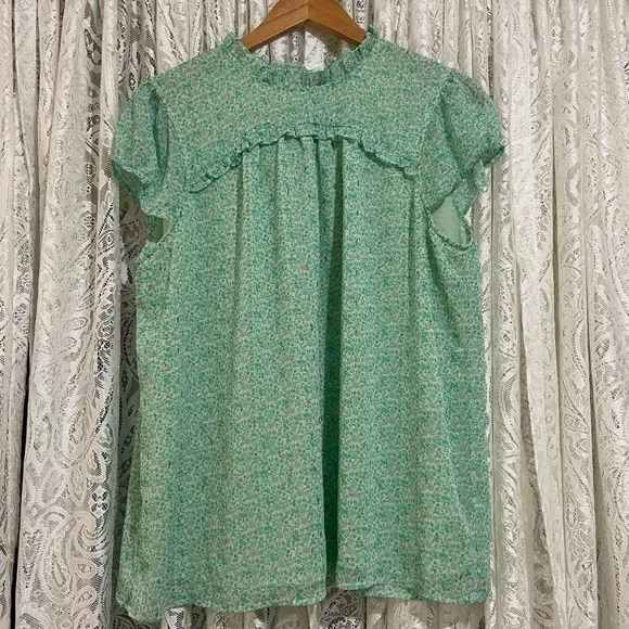 Floral Green Ruffle Blouse
