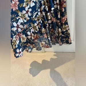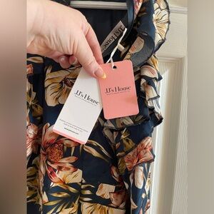Elegant floral maxi dress with a halter neck design. Features a beautiful blue and cream color palette, perfect for any occasion.