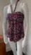 Stylish floral halter top and ruffle top and one bottom bikini with a vibrant pattern. Perfect for casual outings.