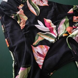 Stylish high-waisted bikini set with vibrant floral print. Perfect for a chic beach look. 2 pairs, one is a CAN 12/US 10 ( small piques on back near tag as shown in pic), the other with tags is a CAN 14/US 12. Smokefree home. Price is for the pair. Bought on sale.