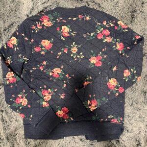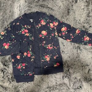 Round neck long sleeve jacket. Front pockets and zip closure.