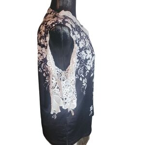 Elegant floral lace cold shoulder top with intricate detailing. Perfect for a chic and stylish look. 100% polyester
