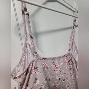 Butter soft fabric, white lace and bow detail neckline. floral print. Adjustable Straps