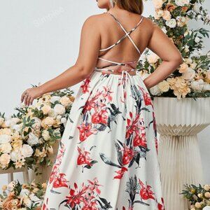 Simplee Plus Floral Print Lace Up Backless Cami Dress