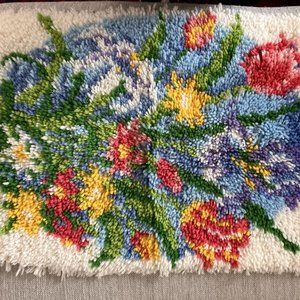 Pretty Flower Latch Hook Rug - Used as a Wall Hanging