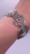 This elegant silvertone stretch bracelet features intricate rose designs, perfect for adding a touch of sophistication to any outfit. Stretch style for easy wear.