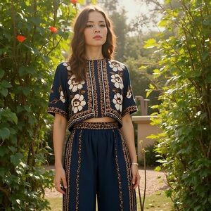 Elevate your style with this elegant floral navy Blouse snd Pant. Perfect for any occasion, it combines comfort and fashion effortlessly.