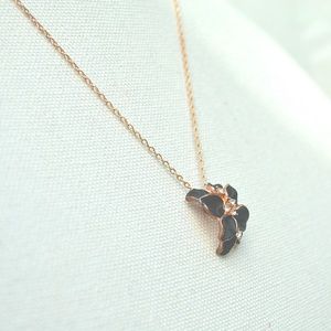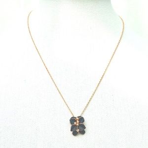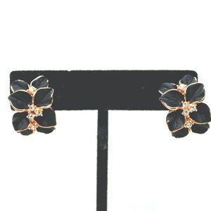 Very pretty necklace and earrings set. Rose gold hue. Black flowers with rhinestones.