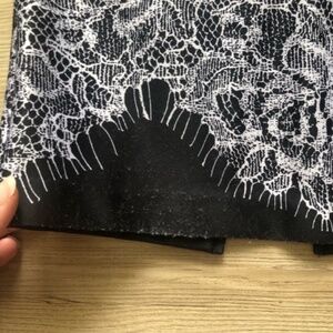 Chic midi dress with intricate lace pattern. Features a flattering V-neckline. Perfect for elegant occasions.