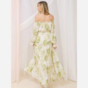 The Garden Party Maxi Dress is a stunning statement piece made for summer celebrations and special occasions. Designed with an elegant off-shoulder neckline, it features long sleeves, a flattering waist sash, and delicate detailing that elevates its flowing silhouette.