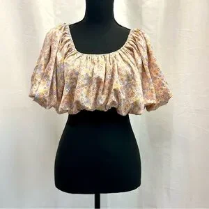 Zara Floral Off-Shoulder Crop Top Yellow Blue S, Zara Women's Yellow Blue Boho Crop Top S, Zara Floral Print Smocked Crop Top, Blue, Yellow, Off-Shoulder Crop Top, Yellow Floral Top, Zara Boho Blouse, Elastic Band Top, Puff Sleeve Crop, Small Spring Summer Top