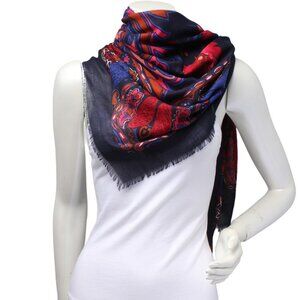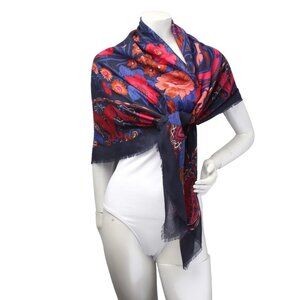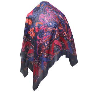 Beautiful large square scarf that can easily double as a lightweight wrap. Feminine floral and paisley design with a light fringe trim.