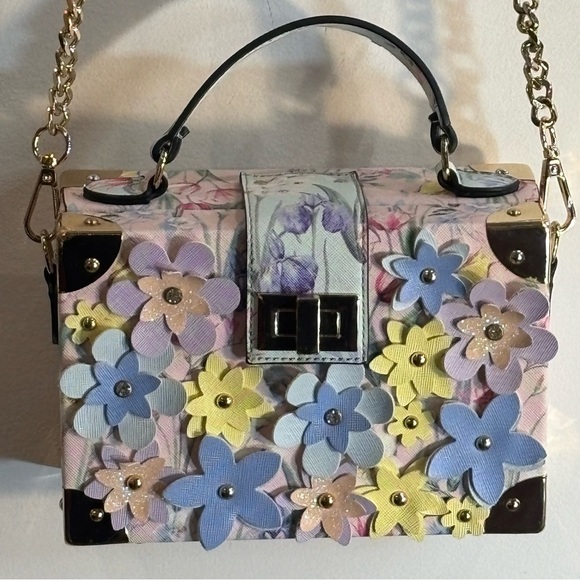 ALDO 3D Floral Pastel Crossbody Top Handle Hard Body Snap Closure Bag Purse
