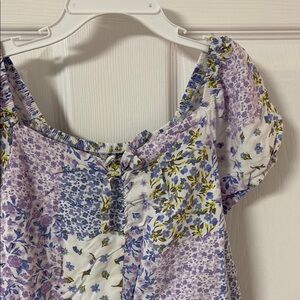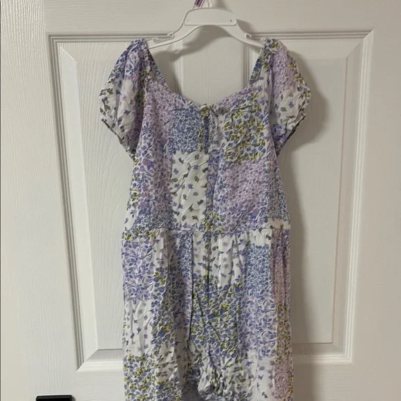 Charming floral patchwork romper with short sleeves. Shorts and flowy skirt in the back. Features a mix of purple, blue, and white patterns. Bought new, worn by one kiddo, bundle and I’ll send an offer with discounted shipping 😊
