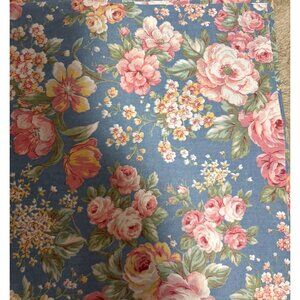 Floral Pattern Fabric Material Pink Roses On Blue Background 11" X 15"