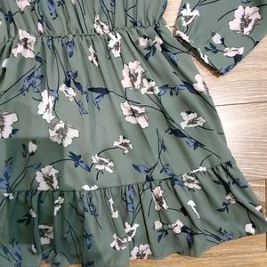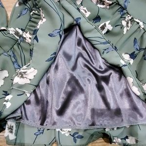 In excellent condition. Lovely pink and white floral pattern on a matcha green background. Has lining inside and is not see through. Such a unique dress!
