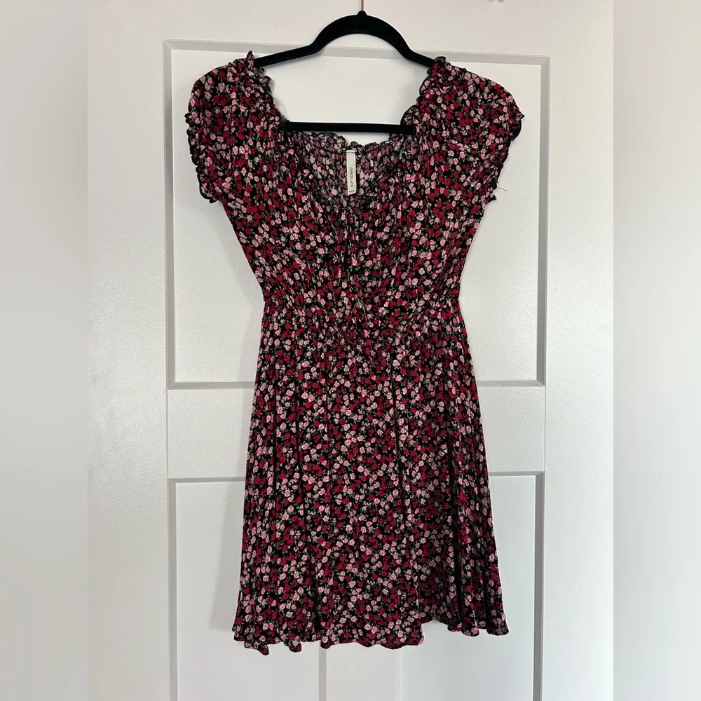 Good condition sundress with rose print. Keyhole neckline, elastic waist and sleeves. Size small. Can be worn off the shoulder