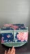 Vintage storage box, in very good condition - stain on front, small stain on interior and discolouration on edge of divider (see photos). Textile exterior with floral pattern, woven handle and edges. Hinged lid with storage pocket and pin cushion. Removable plastic divider shelf and large lined interior. Measurements in photos.