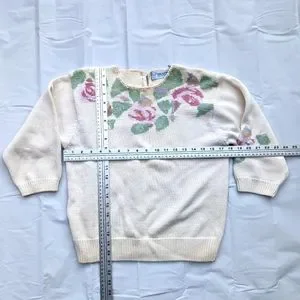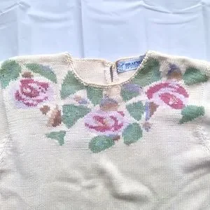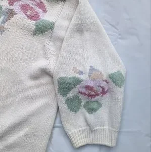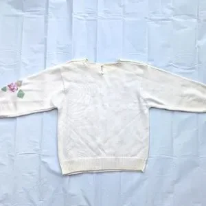 Elegant cream sweater with a beautiful floral pattern. Perfect for adding a touch of style to any outfit.
