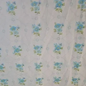 Beautiful fabric with blue floral patterns. Perfect for crafting or home decor.