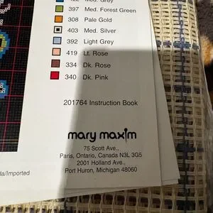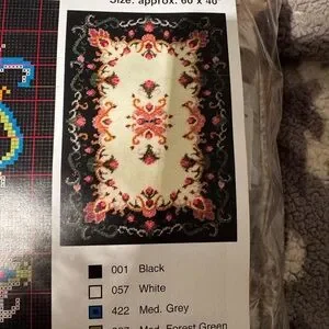 Mary’s maximum hooked rug never done still in orginal packaging. Beautiful Victorian style to. Complement any room