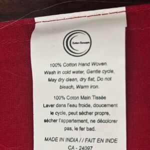 Colorful table runner with a floral pattern. Features red, blue, and brown hues.