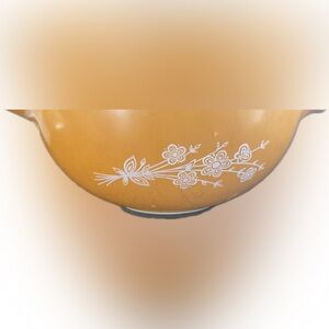 Enhance your home decor with this elegant vintage Pyrex butterfly nesting bowl featuring a delicate floral pattern. Perfect for adding a touch of sophistication to any room. 444. There are scuff marks on it. No chips or cracks