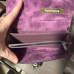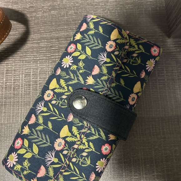 Stylish wallet featuring a vibrant floral pattern. Includes a secure snap closure.