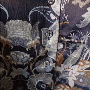 Elevate your style with this elegant floral patterned men's shirt. Featuring a blend of black, gray, and brown tones, this shirt is perfect for any occasion. Its intricate design adds a touch of sophistication to your wardrobe.