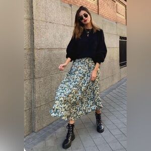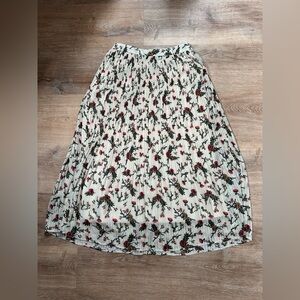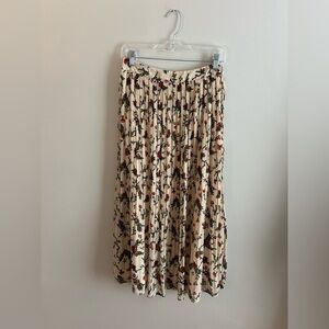 Floral Pleated Flowy Midi Skirt Neutral Colours Size Medium