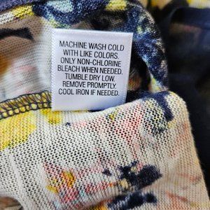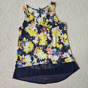 Floral flowy Princess Vera Wang tank. Small zipper at back neckline, navy sheer hem