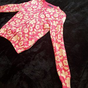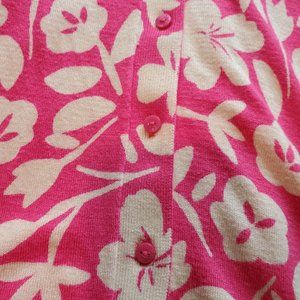Pink Long-Sleeve Cream Floral Print Cardigan