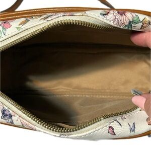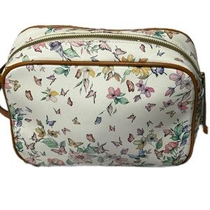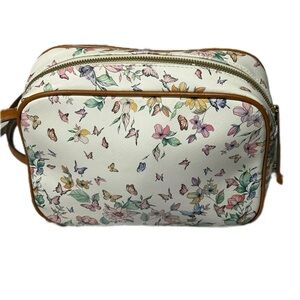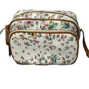 Chic and stylish floral print crossbody bag, perfect for any occasion. Features a beautiful cream background with colorful floral accents. Ideal for adding a touch of elegance to your outfit.