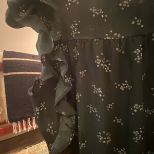Floral Print Green Tank with Ruffles