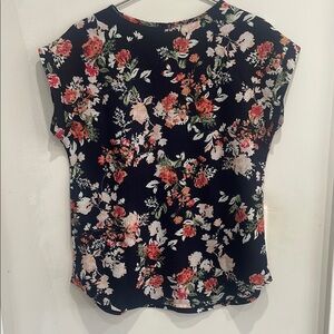 Elegant navy top with a beautiful floral print. Perfect for any occasion.