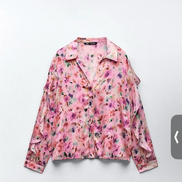 Floral Print Ruffle Shirt - Size Small