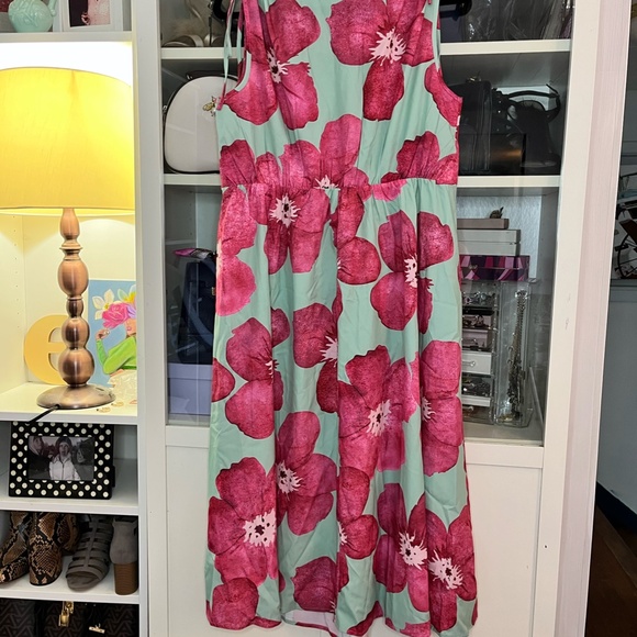 Floral Print V-Neck Summer Midi Length Dress Size 12