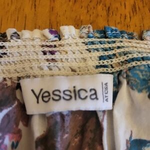 Chic floral print top featuring vibrant blue and pink hues. Perfect for a stylish, casual look.