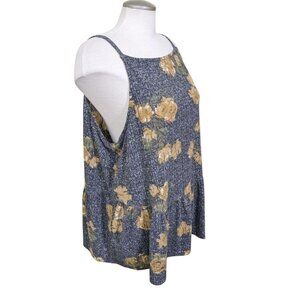 Chic and stylish floral print women's top. Features a beautiful blend of blue and gold colors. Perfect for any casual outing.