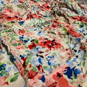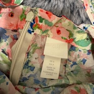 V-neck floral printed midi dress with short sleeves. Self belt and zip closure.