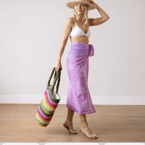 Floral Purple and Pink Batik Beach Sarong With Fringes
