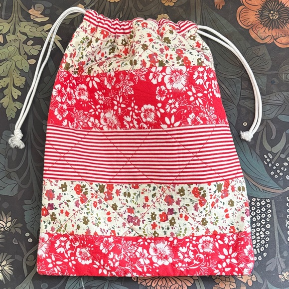 Floral Red Drawstring Bag