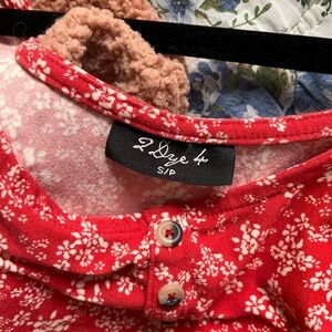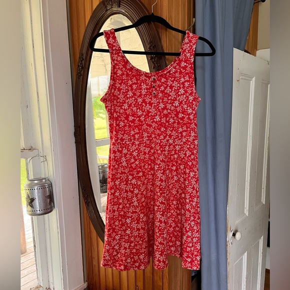 Chic and vibrant, this red mini dress features a charming floral pattern. Perfect for any occasion, it offers a stylish and comfortable fit and has an A-line fit in the skirt part. This dress has the softest fabric and isn’t see through. It’s really lovely