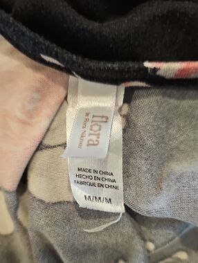 Soft, lightweight women's robe in black with pink floral print.