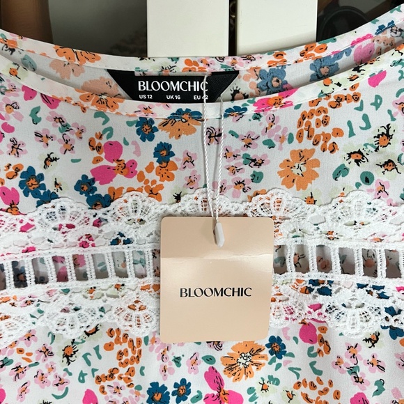 Floral Round Neck Blouse with Lace/Crochet Detail size 12