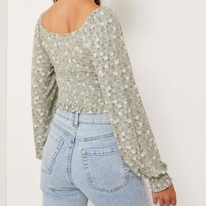 NWT Ardene floral ruched Long sleeve top. Front tie is adjustable. Smocked waist.